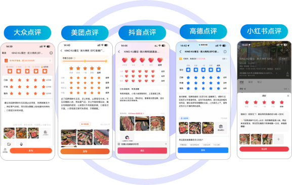 :根据门店特色,AI智能生成大众点评、美团、高德、百度、抖音、小红书等平台的优质评价内容。